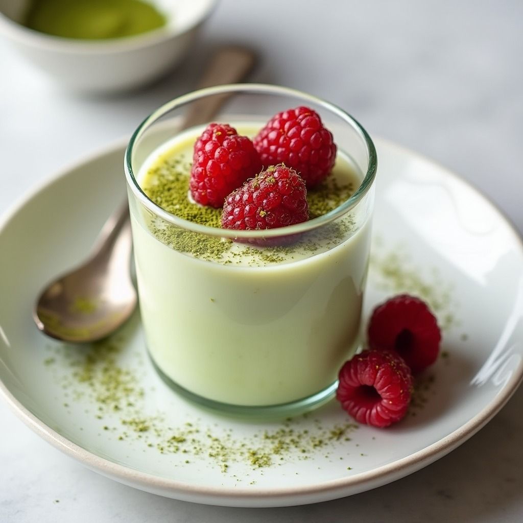- Sahne, Milch, Zucker und Matcha (gesiebt) in einem Topf erhitzen.