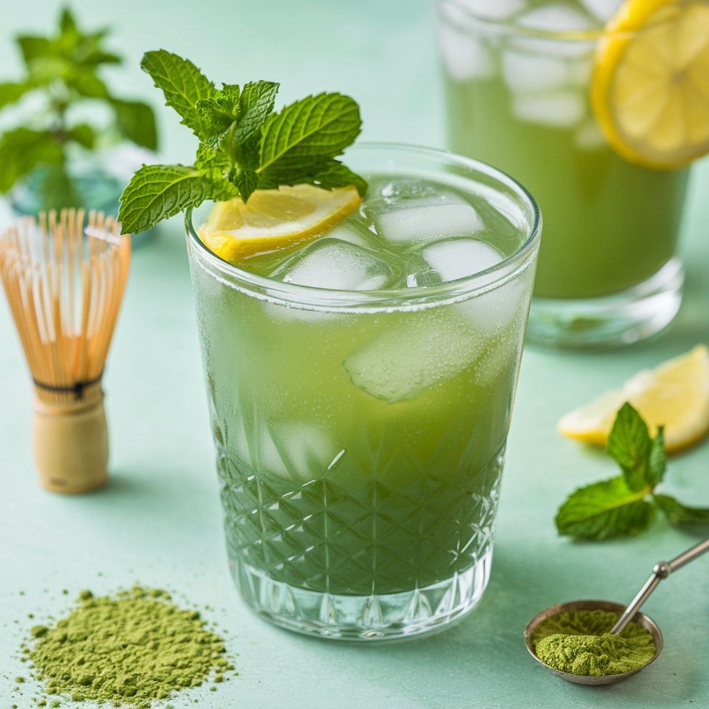 - Gießen Sie das Sprudelwasser ein und gießen Sie den Matcha vorsichtig darüber.